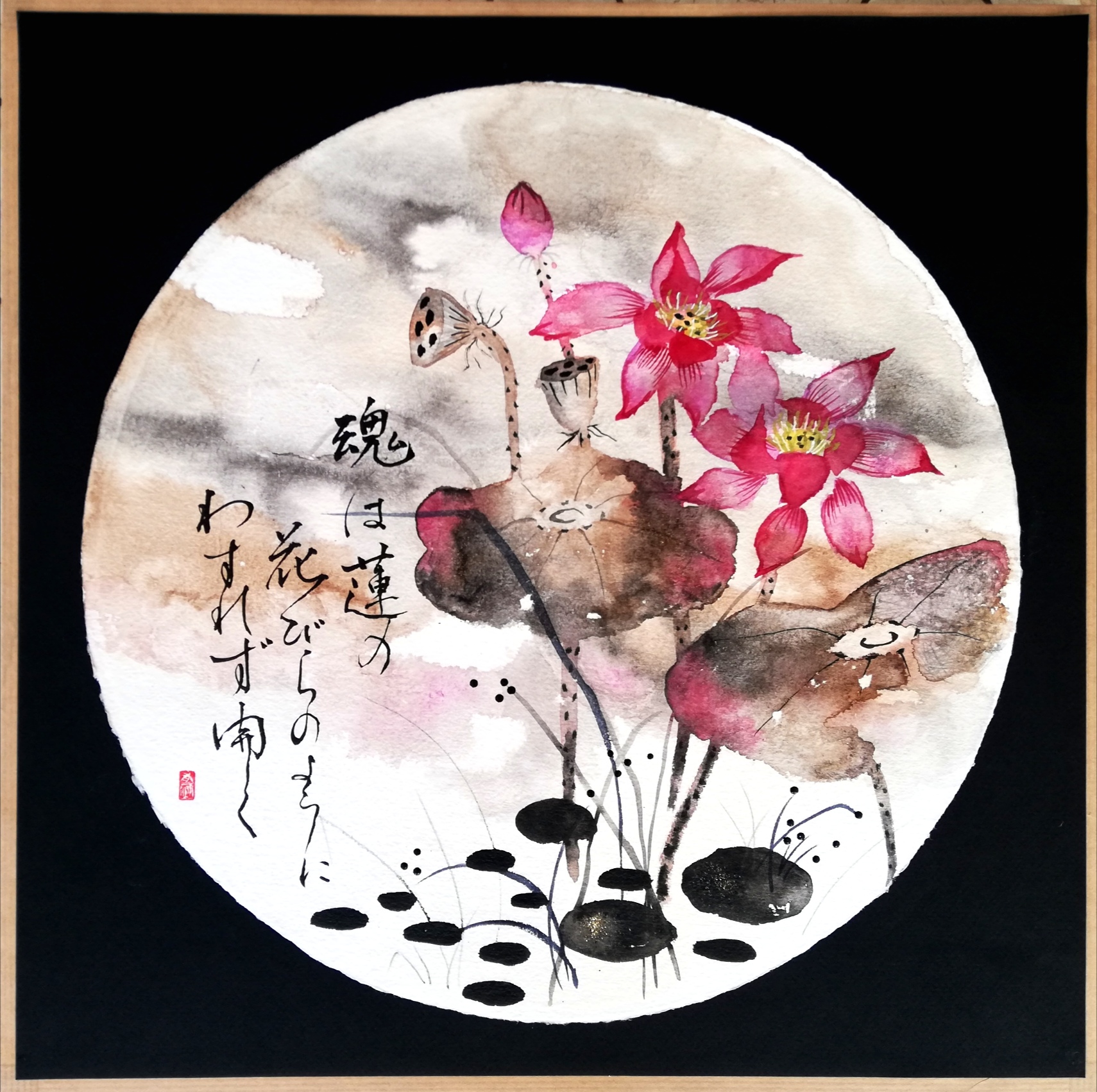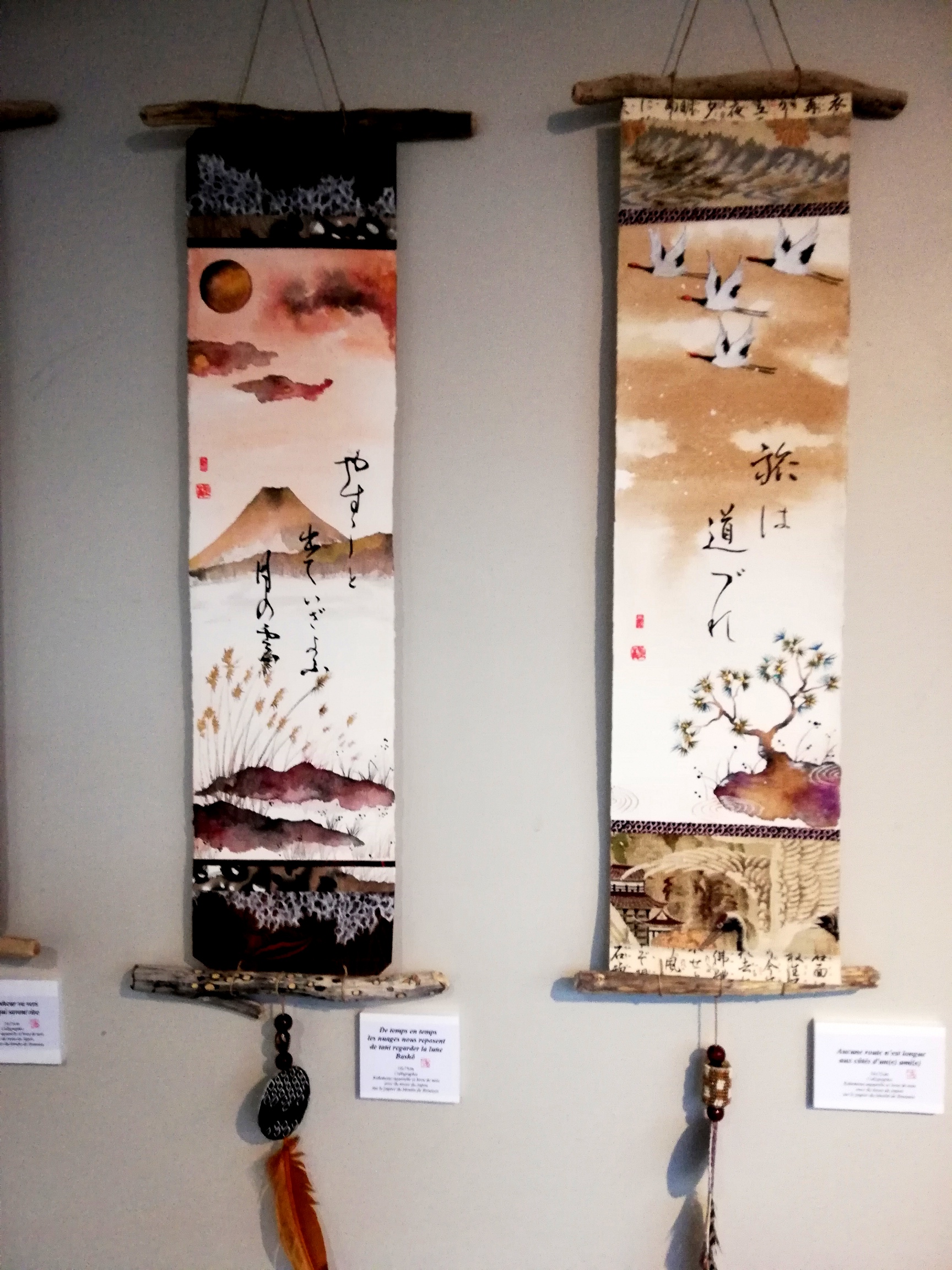Exposition de Kakemono Aquarelle et calligraphie Japonaise à la Médiathèque de Nissan-les-enserune.