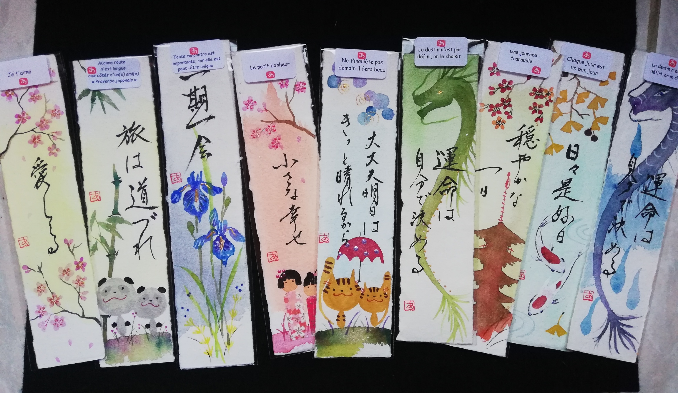 Marque-pages aquarelle sur le papier du Moulin de Brousses